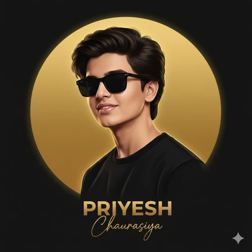 “Priyesh” bold uppercase sans-serif, low opacity dark gold/black; “Chaurasiya” elegant golden cursive signature.