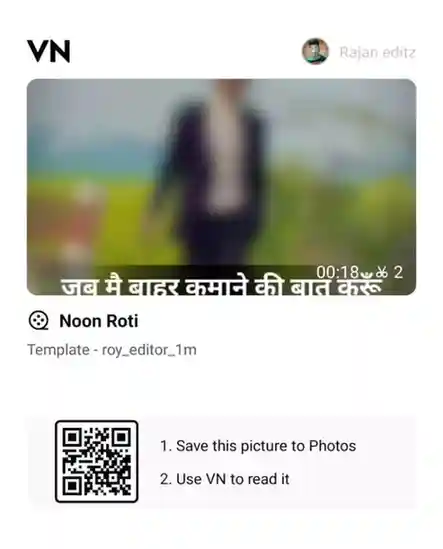 Friends, we will do this edit in vn app with the help of vn template, this application will be easily available on Play Store. After this, open the vn app and scan the vn code and edit your video. Step by step is explained below. You should see and understand it well.