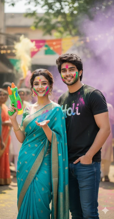 Friends, many people might be wondering where to get editing for couples? So let me tell those people that you will get all kinds of editing related to Holi in this article. If you are a couple, you have a girlfriend or boyfriend, then you can also create a Holi Couple AI photo by uploading your and their image here.